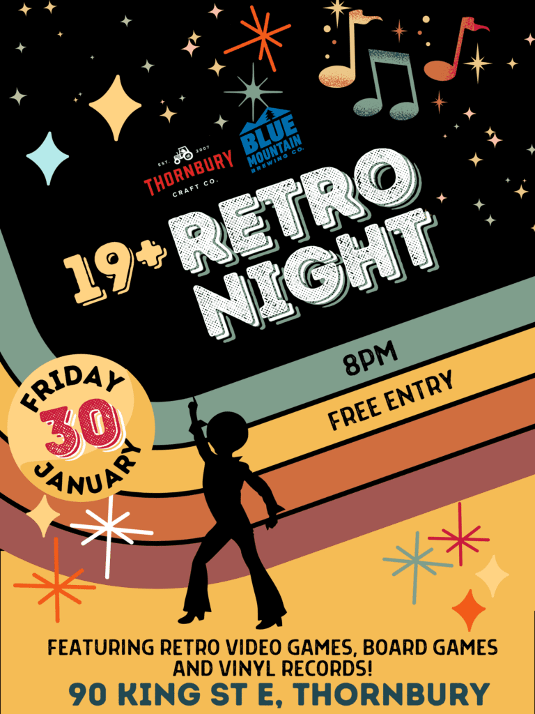 Join us Friday, January 30th at 8pm for Retro Night featuring classic video games, board games, and vinyl records. Free entry and 19+ only!